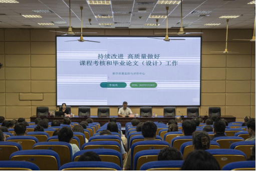 会上,李福英教授作题为《持续改进  高质量做好课程考核和毕业论文(设计)工作》的讲座,她结合学校专项检查发现的问题,对学校课程考核、毕业论文(设计)等主要教学环节质量标准进行了系统的解读和阐释,提出了具体的整改建议。
